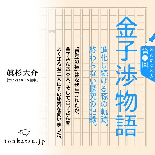 序眞杉大介(tonkatsu.jp 主宰) ー今日、金子さんの銘柄はありますか?ー 「今日、金子さんの銘柄はありますか?」 お客様からこのリクエストを受けない日は、ほとんどありません。天城黒豚をはじめ、金子さんの銘柄を目 … 続きを読む 金子渉物語